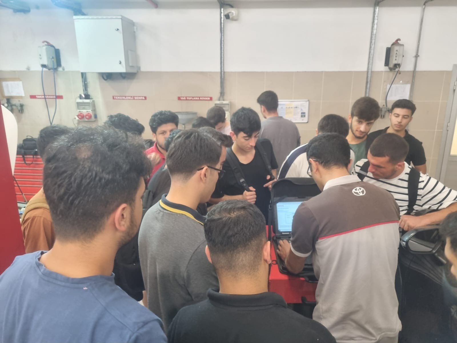 04.10.2024 Cuma günü Mersin Toyota Plaza Boranlar yetkili servisinde Mekanik Atölye Formeni Sayın Deniz KARAKIŞ tarafından son teknoloji cihaz olarak kullanılan GTS Plus Motor Test ve Arıza Tespit Cihazı ile ilgili öğrencilerimize teorik ve uygulamalı eğitim verilmiştir. Katkılarından dolayı Mersin Toyota Plaza Boranlar yetkili servisine ve sayın Deniz KARAKIŞ'a teşekkür ederiz.
