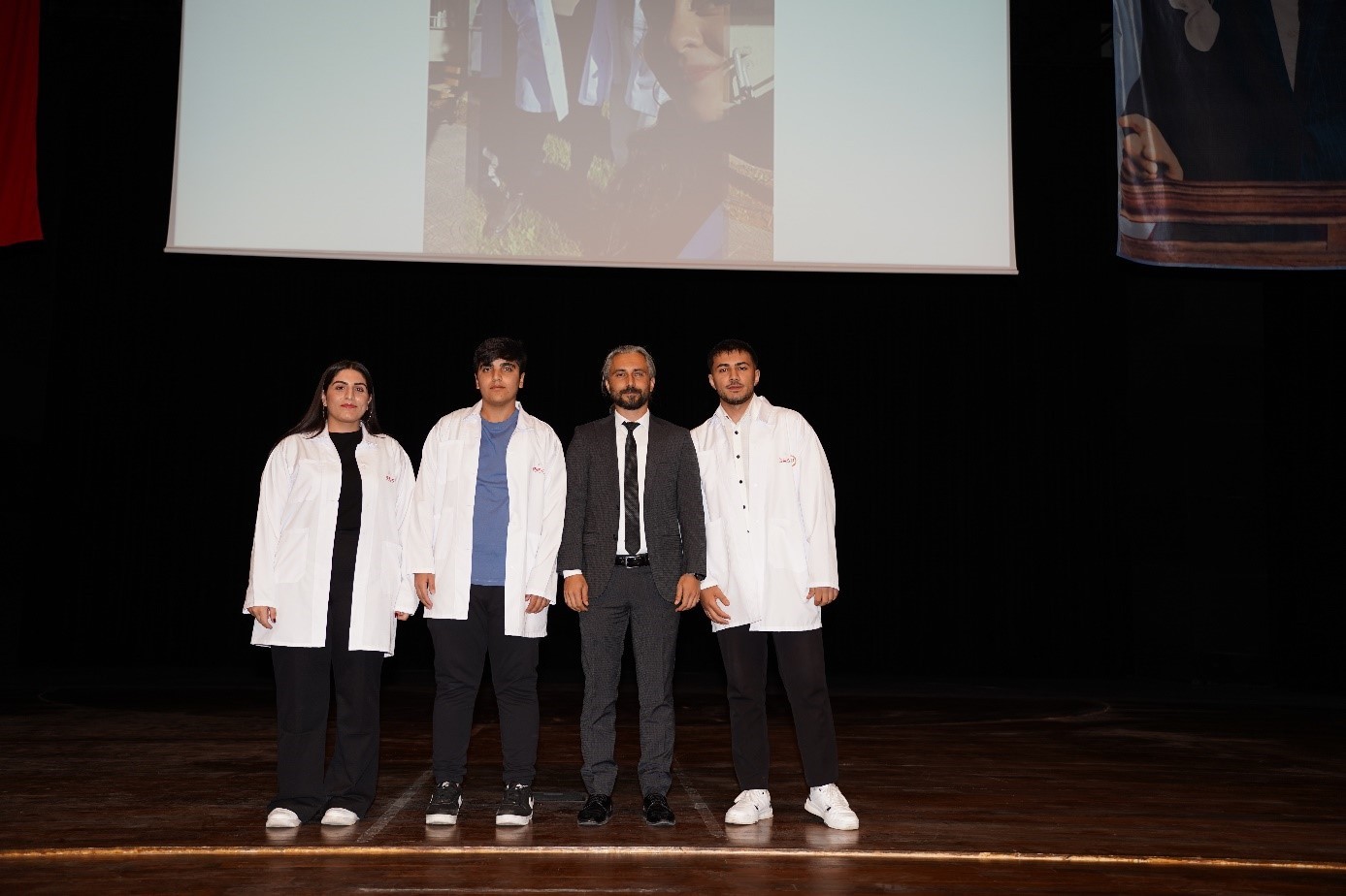 Öğrencilerimiz adına konuşan 5. sınıf öğrenci temsilcisi Şeyhmus ATIZ ise Üniversitemiz öğrencisi olarak beş yıldan neler yaşadığını anlatarak beyaz önlük giyecek genç meslektaşlarına bazı tavsiyelerde bulundu. Konuşmaların ardından beyaz önlük giyme törenine geçildi.