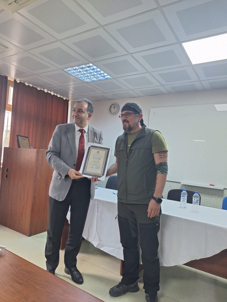 ADRO Üyesi Özkan ÇETİN’e Fakültemiz Dekanı Prof. Dr. Ahmet ATASOY tarafından, ADRO Yönetim Kurulu Üyesi Gökhan DOĞAN’a Turizm Rehberliği Bölümü Kurucu Öğretim Üyesi Prof. Dr. Uysal YENİPINAR tarafından, Profesyonel Turist Rehberi ve METİOD Yönetim Kurulu Üyesi Pelin DOĞAN’a Turizm Rehberliği Bölüm Başkanı Prof. Dr. Sevda BİRDİR tarafından ve ADRO Yönetim Kurulu Üyesi Bengican ÖDEMİŞ’e Turizm Rehberliği Bölüm Başkan Yardımcısı Doç. Dr. Sabri ARICI tarafından teşekkür belgesi takdim edildi.
