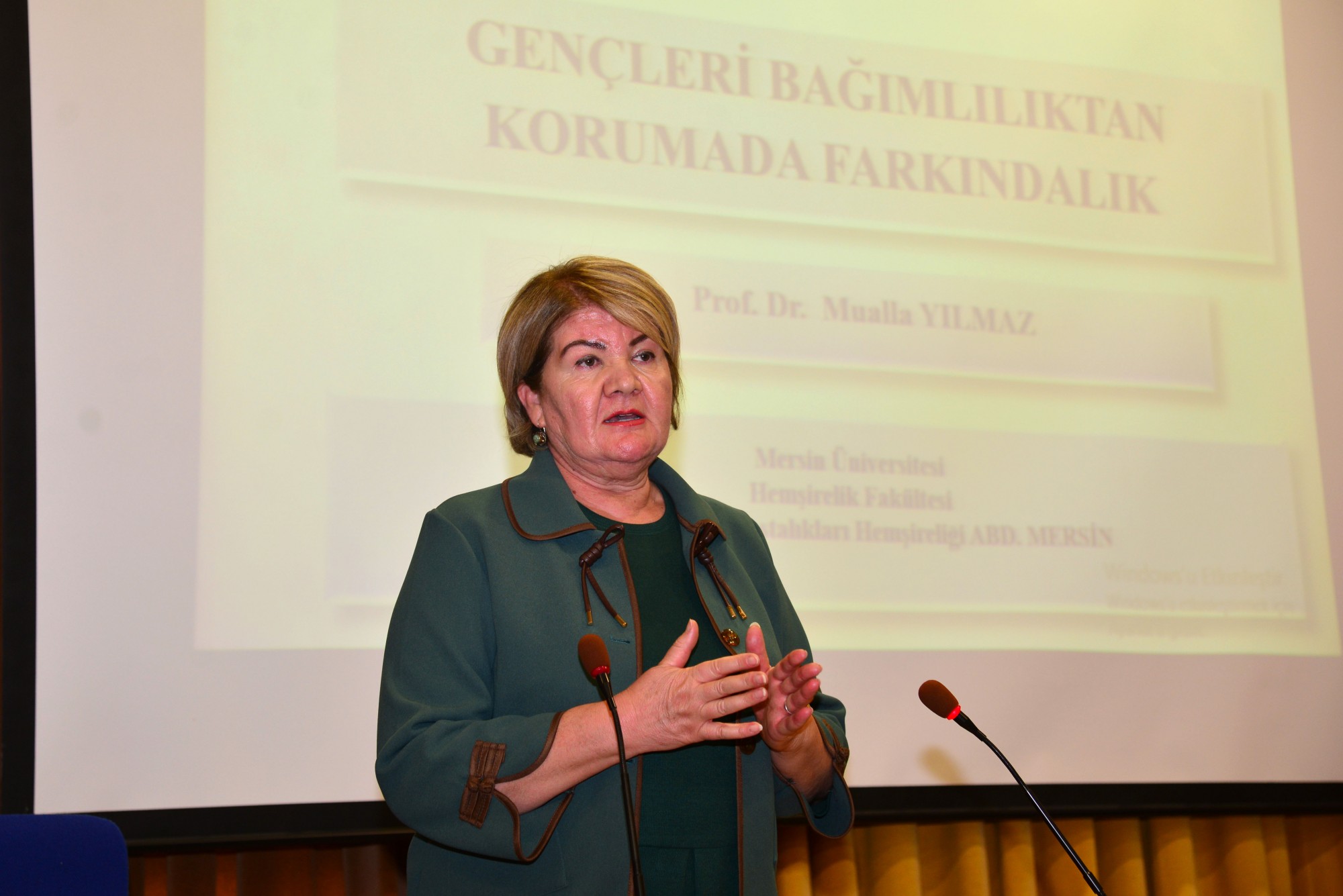 Konferansa konuşmacı olarak katılan Bağımlılıkla Mücadele Komisyonu Üyesi Prof. Dr. Mualla YILMAZ, teknoloji, alkol ve madde bağımlılığı konularında farkındalık oluşturmanın önemini vurguladı. Prof. Dr. Yılmaz, gençlerin bu tür bağımlılıklardan korunmaları için dikkat etmeleri gereken noktaları katılımcılarla paylaştı.