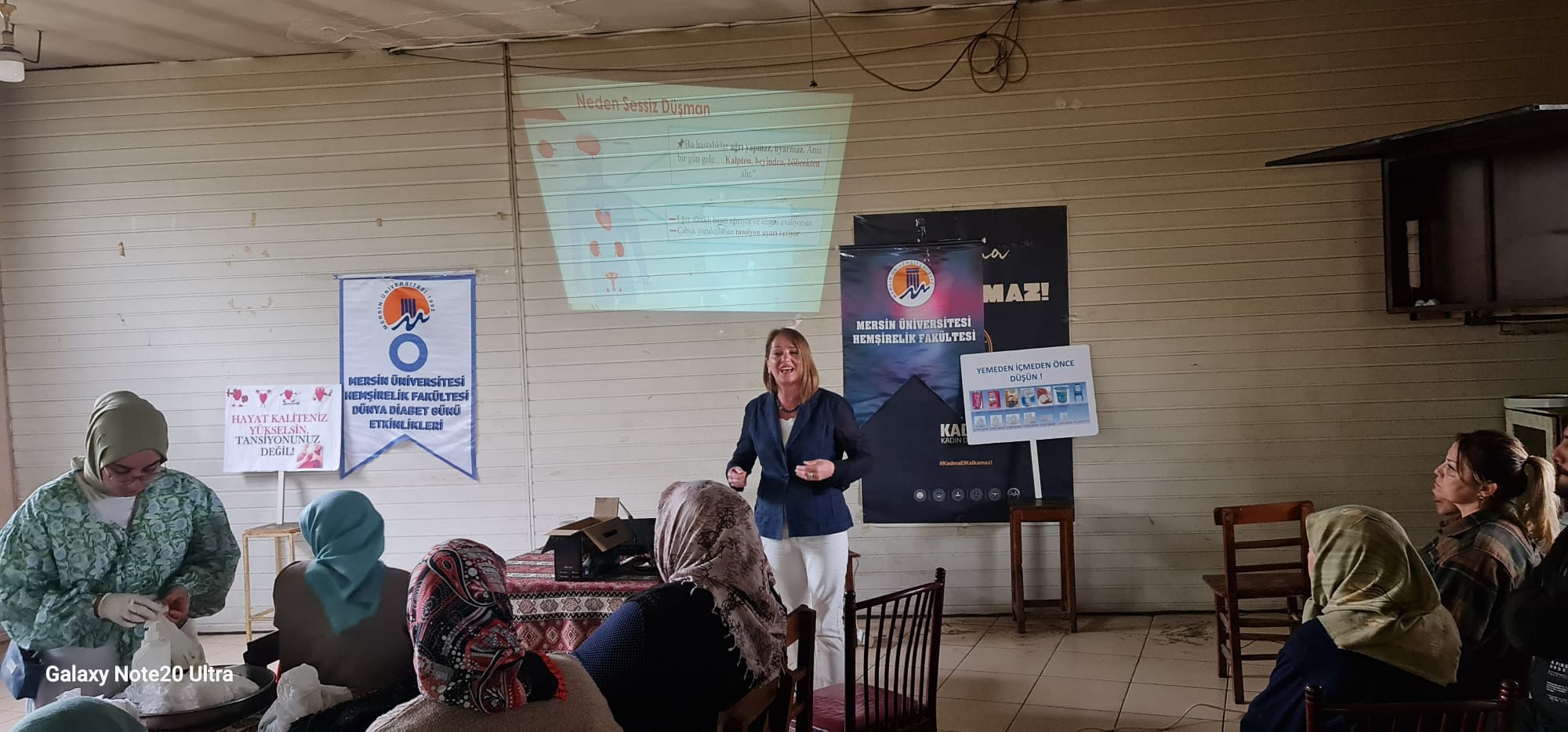 25.04.2025 tarihinde Prof. Dr. Meral GÜN tarafından Değirmençay Köyünde halka “SESSİZ DÜŞMANLAR ŞEKER VE TANSİYON” adlı bir eğitim gerçekleştirilmiştir. Eğitime yaklaşık 50-60 kişi katılmıştır. Eğitimin içeriğinde hipertansiyon ve diyabetin neden sessiz düşman olduğu, nelere yol açtığı, önleyici ve koruyucu davranışların neler olduğu yer almakta idi. Eğitime 4. Sınıf öğrencimiz Esra Kartal da katkı sağlamıştır. Eğimin ardından köy halkının kan şekerlerine bakılmış ve geri bildirimlerde bulunulmuştur. Kan şekeri analizlerinde yaklaşık 10 – 15 kişinin kan şekeri değerlerinin normal değerin üzerinde olduğu ve bu kişilerin kan şekeri değerinin yüksek olduğunun farkında olmadıkları saptanmıştır. İlgili kişilere sağlık kuruluşuna başvurmalarına yönelik yönlendirme yapılmıştır. Oldukça etkili ve verimli bir eğitim olmuştur.