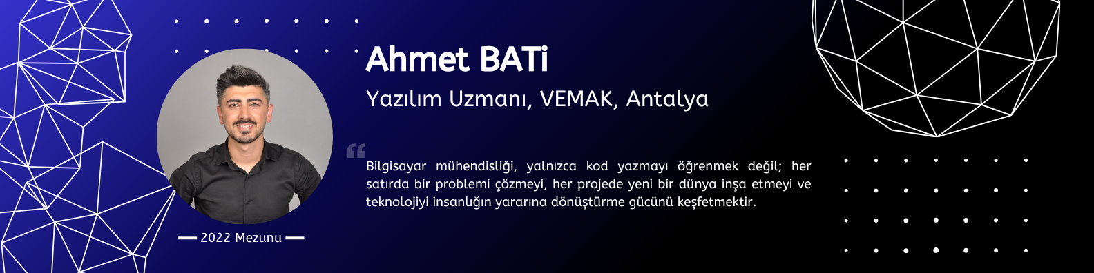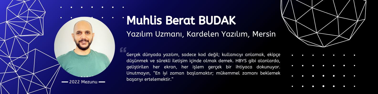 "Algoritmalardan Hayallere: Kendi Mühendislik Hikayeni Yazmaya Bu Seslerle Başla" serimizde, mezunlarımızdan gelen yol gösterici ve ilham verici mesajlara yer veriyoruz. Yeni öğrencilerimize yol göstermesi dileğiyle.