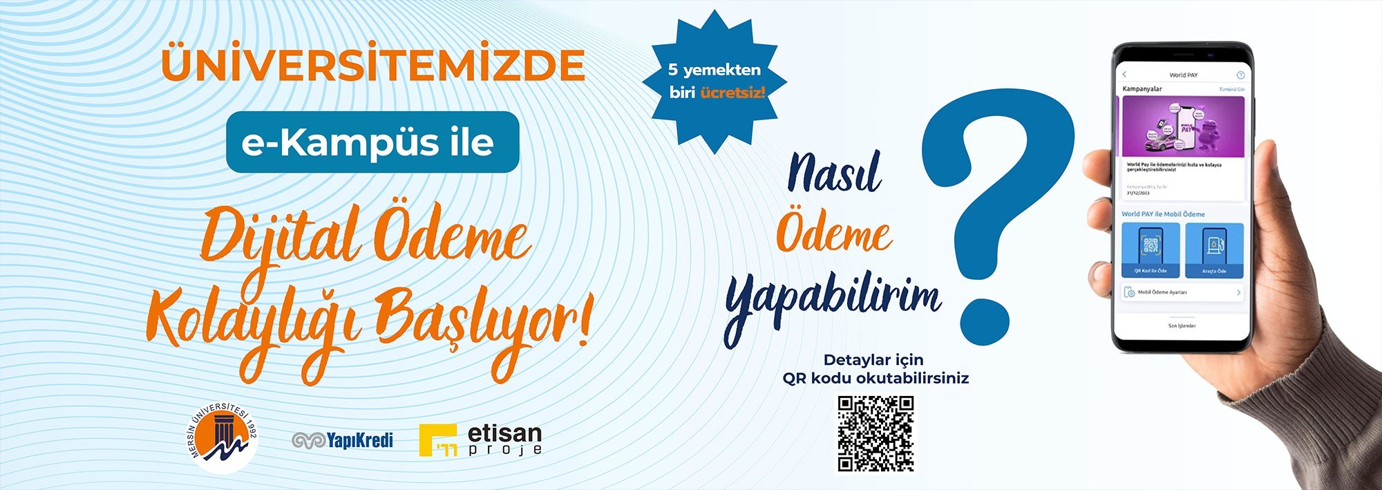 Üniversitemiz, öğrencilerimizin ve personelimizin kampüs içi yemekhane ödemelerini kolaylaştırmak amacıyla dijital ödeme sistemine geçiş yapmıştır.