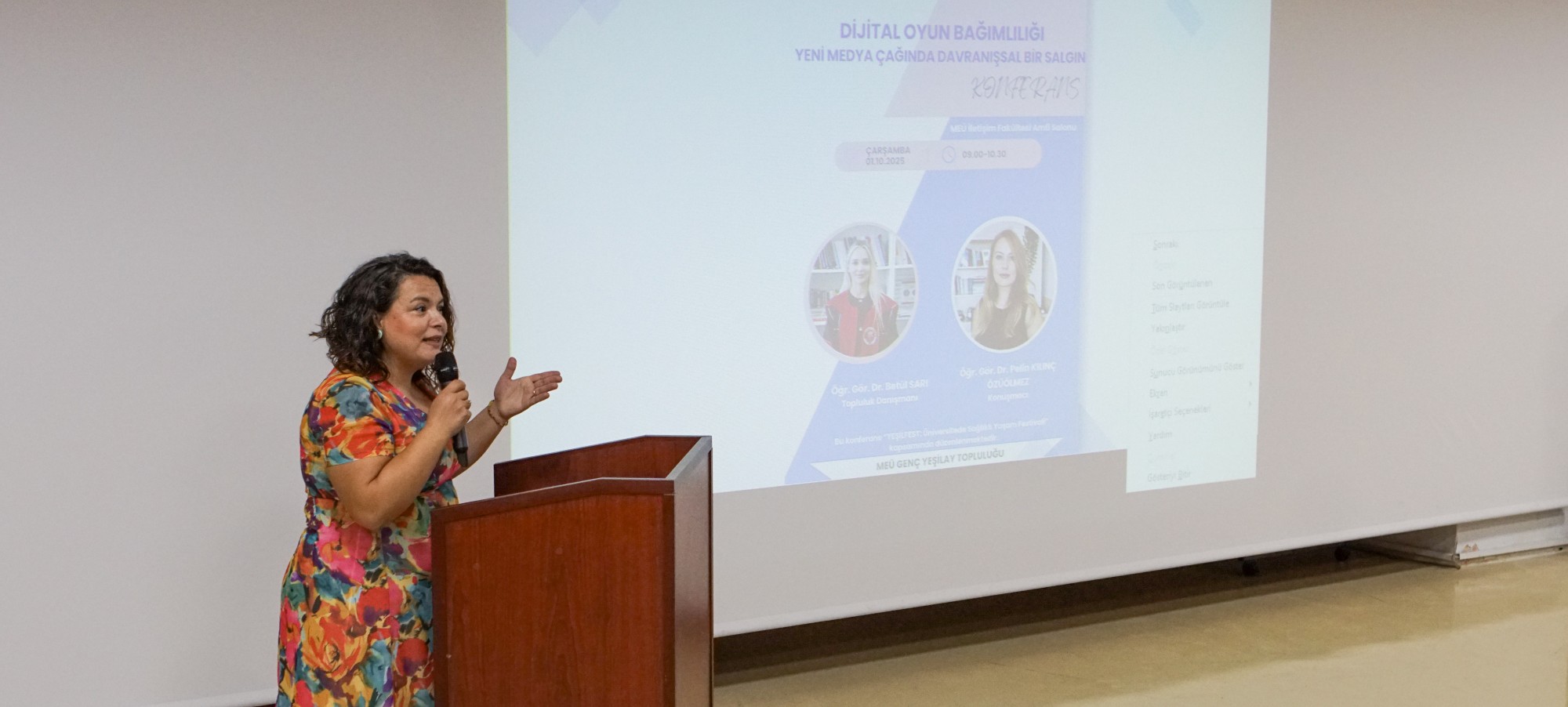 Mersin Üniversitesi İletişim Fakültesi Amfi Salonunda, “Dijital Oyun Bağımlılığı: Yeni Medya Çağında Davranışsal Bir Salgın” başlıklı konferans gerçekleştirildi. “YeşilFest: Üniversitede Sağlıklı Yaşam Festivali” kapsamında düzenlenen konferans, Sağlık Hizmetleri Meslek Yüksekokulu Tıbbi Hizmetler ve Teknikler Bölümü öğretim üyesi ve etkinliğin topluluk danışmanı Öğr. Gör. Dr. Betül Sarı öncülüğünde organize edildi.