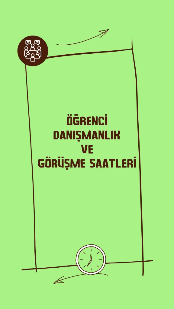 Öğrencilerimiz, eğitim-öğretim süreçlerine ilişkin akademik, idari veya kişisel konularda danışman öğretim elemanlarıyla belirtilen gün ve saatlerde görüşebilirler. Danışmanlık görüşmeleri; ders seçimi, staj, mezuniyet, muafiyet, Erasmus ve kariyer planlaması gibi konularda rehberlik sağlamayı amaçlamaktadır.