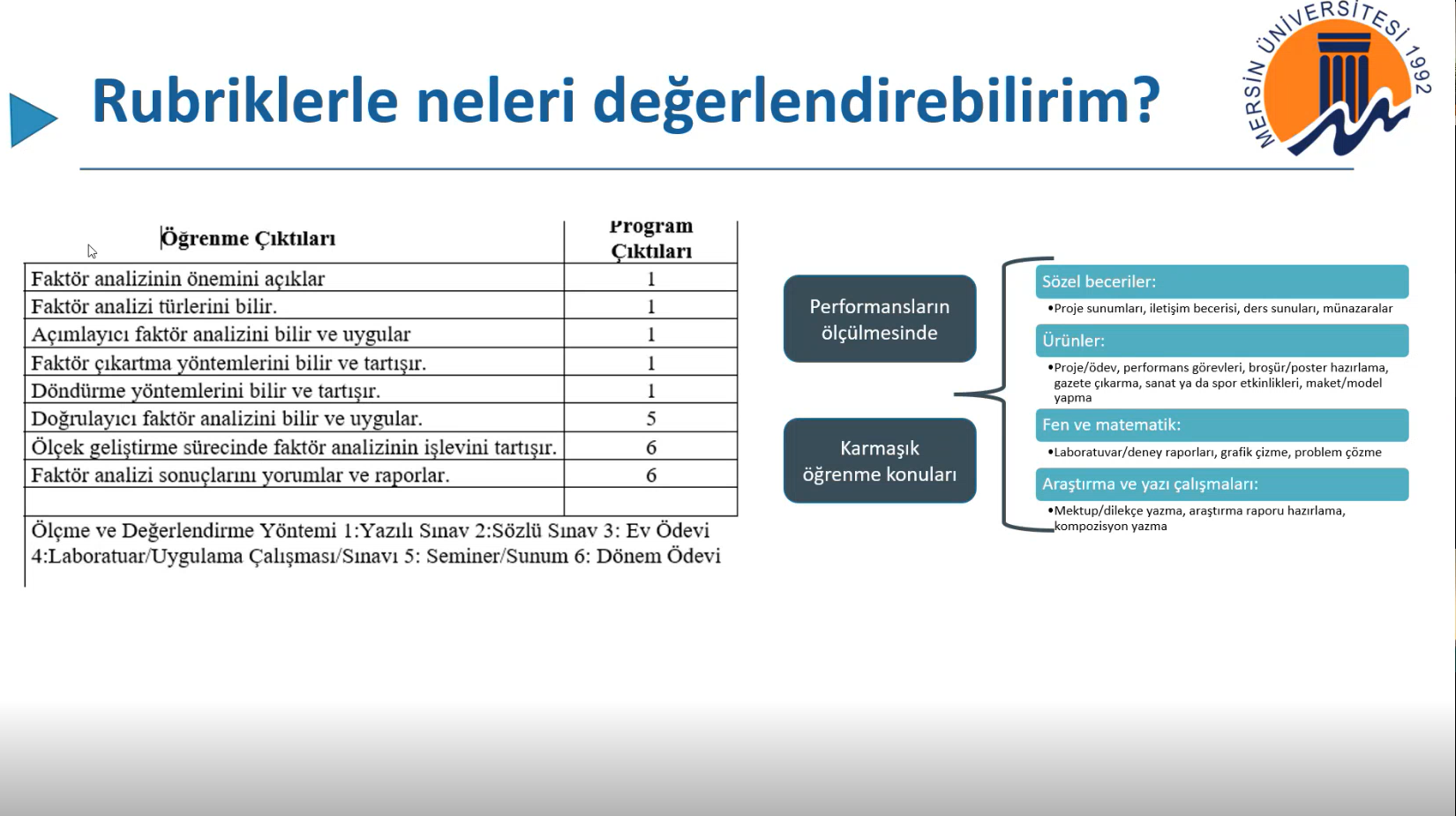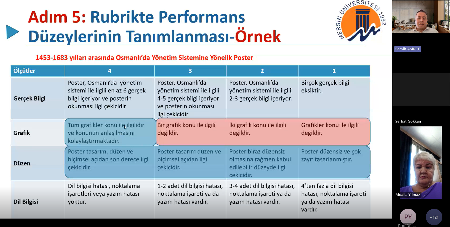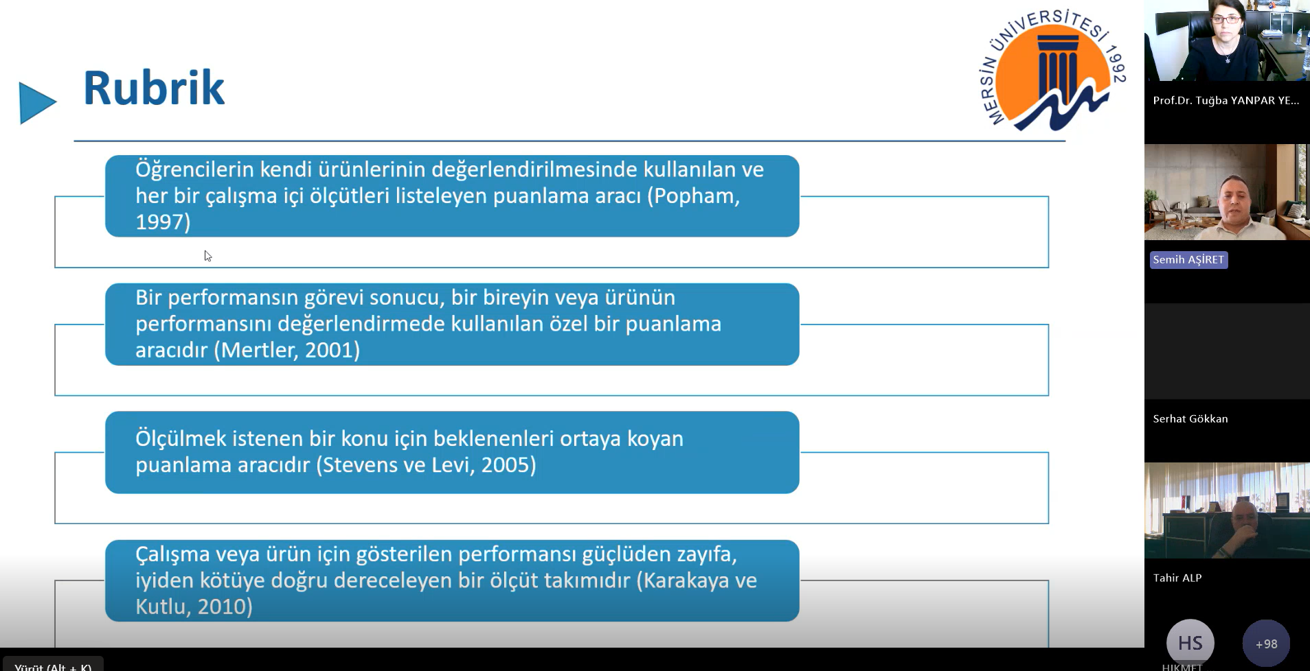 Mersin Üniversitesi Öğrenme ve Öğretmeyi Geliştirme Uygulama Araştırma Merkezi ve Eğitim Fakültesi işbirliğiyle düzenlenen “Eğiticilerin Eğitimi I” programının ikinci etkinliği, “Rubrik Geliştirme Süreçleri: Kuramsal Temeller ve Uygulama Örnekleri” başlığıyla 17 Ekim 2025 tarihinde çevrim içi olarak gerçekleştirildi.