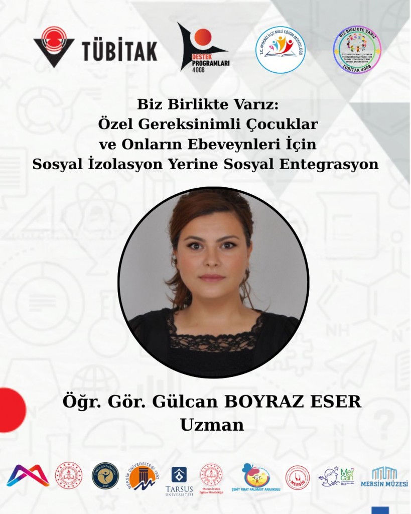 TÜBİTAK 4008 – Özel Gereksinimli Bireylere Yönelik Kapsayıcı Toplum Uygulamaları  kapsamında  “Biz Birlikte Varız: Özel Gereksinimli Çocuklar ve Onların Ebeveynleri için Sosyal İzolasyon Yerine Sosyal Entegrasyon” adlı proje, 17–21 Kasım 2025 tarihleri arasında gerçekleştirilecektir.