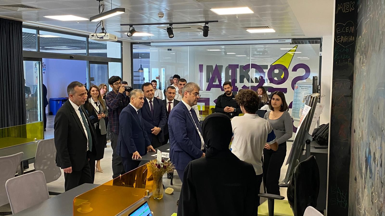 Ziyaret kapsamında heyet, merkezimizdeki genç girişimcilerle tanışarak projelerini yerinde inceledi, çalışmalar hakkında bilgi aldı ve girişimcilerimizle samimi bir sohbet gerçekleştirdi.