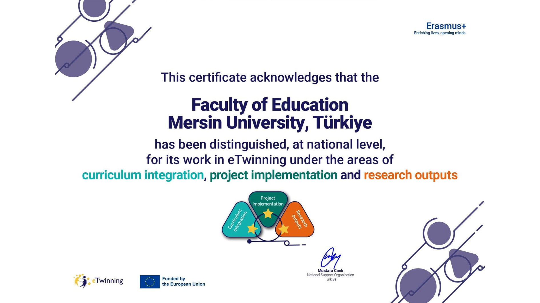 Üniversitemiz, 2025 yılında yürüttüğü başarılı eTwinning uygulamalarıyla bir kez daha kalite etiketi almaya hak kazanarak, Avrupa Birliği’ne üye ve üye olmayan ülkeler arasından seçilen 15 finalist üniversite arasında Türkiye’yi temsil etme başarısı gösterdi.