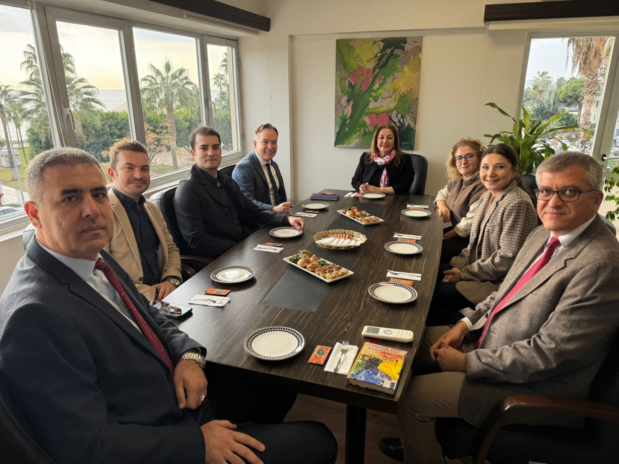 01 Aralık 2025 tarihinde, Güney Ecza Kooperatifi Fakültemizi ziyaret etti. Güney Ecza Kooperatifi Yönetim Kurulu Başkanı Ecz. Tarkan BİR, Güney Ecza Kooperatifi Genel Sekreteri Uzm. Ecz. Çağrı ÖZDEMİR, Güney Ecza Kooperatifi Yönetim Kurulu Üyesi Uzm. Ecz Serdar AKÇA ve Güney Ecza Kooperatifi Yönetim Kurulu Yedek Üyesi Dr. Ecz. Gamze Rüzgar ÖZEMRE ile Fakültemiz Dekanı Prof. Dr. Necmiye CANACANKATAN, Dekan Yardımcıları Doç. Dr. Mahmut ÜLGER ile Dr. Öğr. Üyesi Ş. Efsun ANTMEN ve Fakülte Sekreterimiz Volkan DARÇIN’ın da bulundu. Ziyarette, 2025-2026 Eğitim Öğretim yılı içerisinde birlikte gerçekleştirilecek projeler ve etkinlikler hakkında fikir alışverişinde bulunuldu.