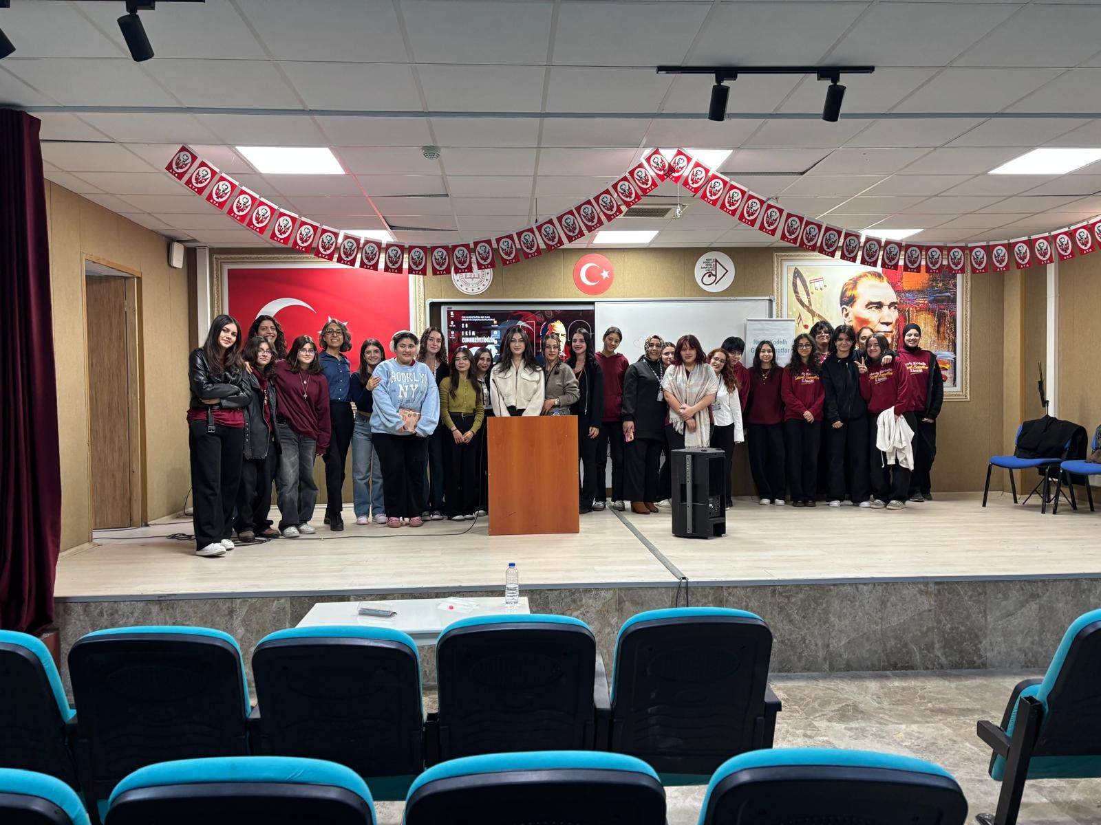 Mersin Üniversitesi Sağlık Bilimleri Fakültesi Ebelik Bölümü, 12 Aralık 2025 Cuma günü Nevit Kodallı Güzel Sanatlar Lisesi’nde Resim Bölümü kız öğrencileriyle bir araya geldi. Okulun seminer salonunda gerçekleştirilen etkinlikte, “Kadın: Zarafetin En Güçlü Hali” başlıklı interaktif bir eğitim sunumu yapıldı.