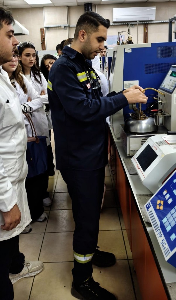 Kimya ve Kimyasal İşleme Teknolojileri Bölümü öğrencileri, Prof. Dr. Meral TURABİK, Öğr. Gör. Dr. Ümmühan SOLMAZ ve Kimya Laboratuvar Teknisyeni Neslihan ÜNÜVAR eşliğinde uygulamalı eğitim kapsamında SGS Ham Petrol ve Petrol Ürünleri Laboratuvarını ziyaret ettiler.