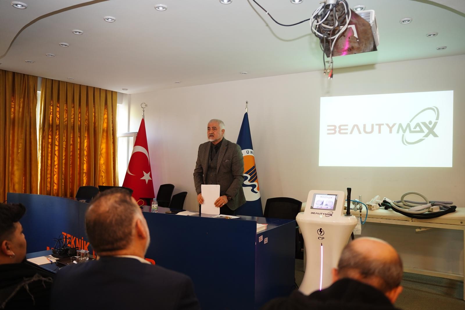 Etkinlikte konuşmacı olarak yer alan Beauty MAX Firması Genel Müdürü Öğr. Gör. Mahir Can KAÇAR ile Satış ve Pazarlama Müdürü Rıfat İLHAN, yeni teknoloji lazer cihazlarının önemi, etkileri, üretim fonksiyonları ve uygulama süreçlerine ilişkin detaylı bilgiler paylaştı. Ayrıca, yeni nesil cihazlarda yapay zekâ kullanımının sektöre etkileri hakkında öğrencilere bilgilendirme yapıldı ve uygulamalı tanıtımlar gerçekleştirildi.