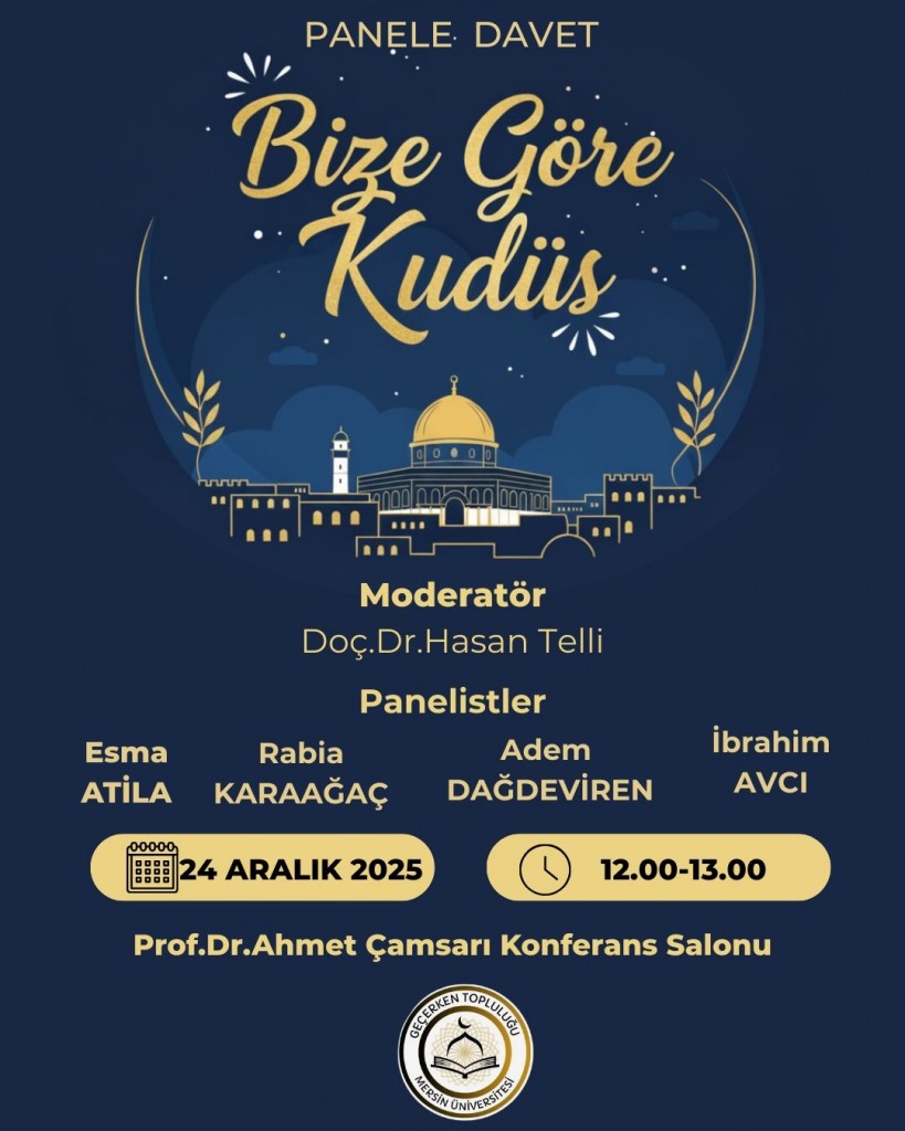 Mersin Üniversitesi İlahiyat Fakültesi uhdesinde, öğrenci topluluğumuz “Geçerken” tarafından düzenlenen “Bize Göre Kudüs” paneli tamamlandı.