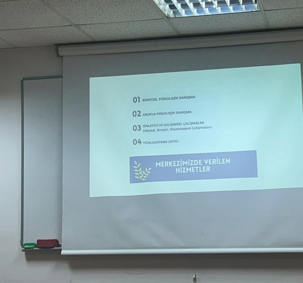 Rehberlik ve Psikolojik Danışmanlık Uygulama ve Araştırma Merkezi Müdür Yardımcısı Öğr. Gör. Dr. Sena Karakuş tarafından verilen seminere beş öğrenci katıldı. Etkinlikte, göçmen öğrencilerin üniversite yaşamında karşılaştıkları psikolojik ve sosyal uyum süreçleri, destek ihtiyaçları ile psikolojik danışmanlık hizmetlerine erişim ve başvuru süreçleri hakkında bilgilendirme yapıldı.