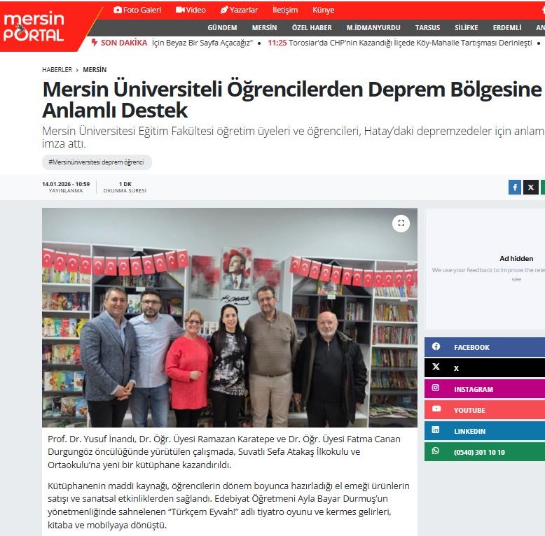 İlgili haber sayfası; Mersin Üniversiteli Öğrencilerden Deprem Bölgesine Anlamlı Destek