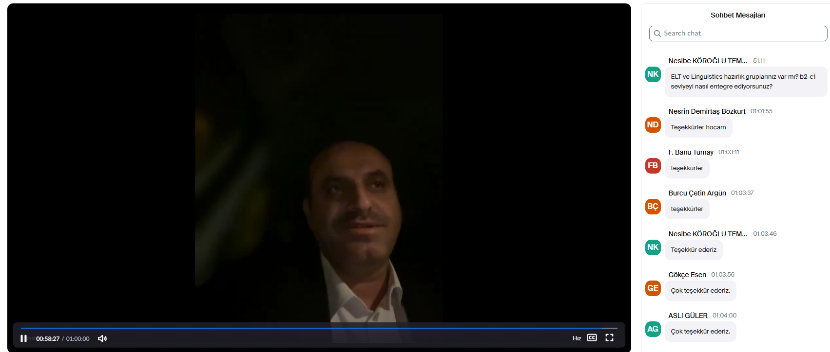 Webinarın kapanış bölümünde Yabancı Diller Yüksekokulu Müdürümüz Sayın Doç Dr. Memet Zeki Uyanık, Oxford University Press ekibine değerli katkıları ve paylaşımları için teşekkürlerini ileterek, bu tür iş birliklerinin kurumsal gelişim açısından önemini vurguladı.