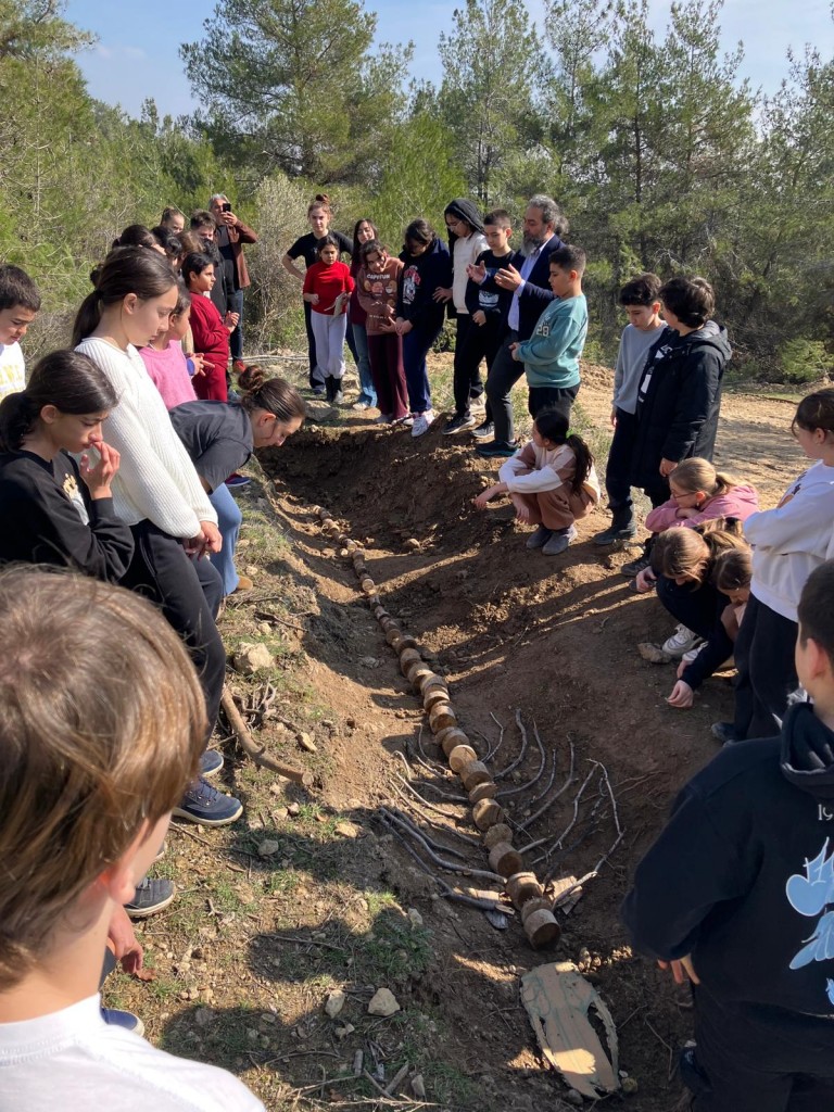 Etkinliğin en dikkat çekici bölümünü öğrencilerin hazırladığı fin balinası (Balaenoptera physalus) kazı alanı ve yapay iskelet modeli oluşturdu. Öğrenciler, gerçek bir paleontolojik kazı simülasyonu gerçekleştirerek toprağın altına yerleştirilen balina iskeletini ortaya çıkardı ve ardından iskeletin anatomik yapısı birlikte incelendi. Çalışma sırasında çocuklara sulak alanların su döngüsündeki rolü, Mersin Körfezi’nde yaşayan canlı çeşitliliği, deniz çayırlarının oksijen üretimi ve kıyıların korunmasındaki işlevi ile balinaların deniz ekosistemindeki yeri uygulamalı örnekler eşliğinde anlatıldı.