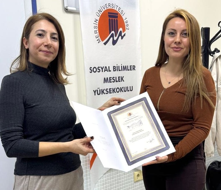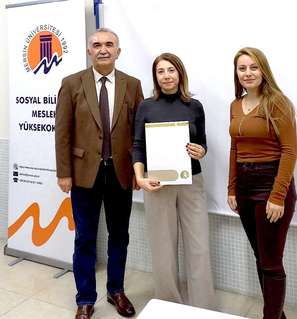 Program sonunda Sosyal Bilimler Meslek Yüksekokulu Müdür Yardımcısı Öğr. Gör. Dr. Pelin Kılınç Özüölmez tarafından etkinliğe katkılarından dolayı konuşmacı Gönül Gürdal’a teşekkür belgesi takdim edildi.