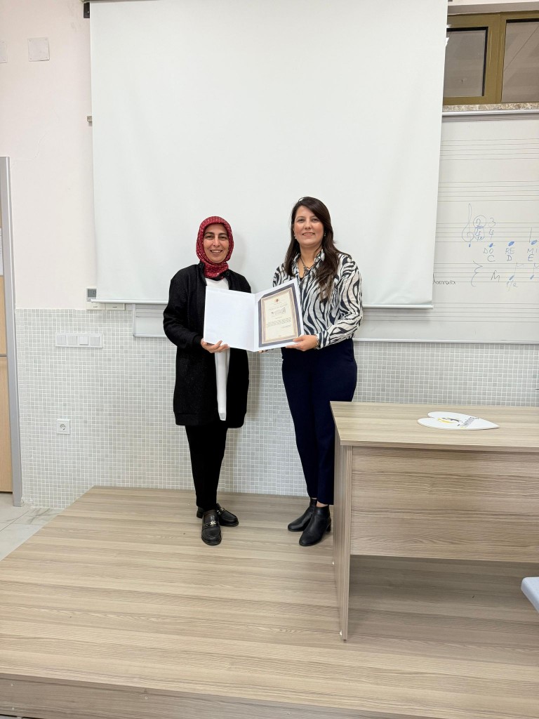 Çalıştay sonunda Dekan Yardımcısı Doç. Dr. Nejla Gürefe, mentör öğretmenlere katkılarından dolayı teşekkür ederek belge takdim etti.