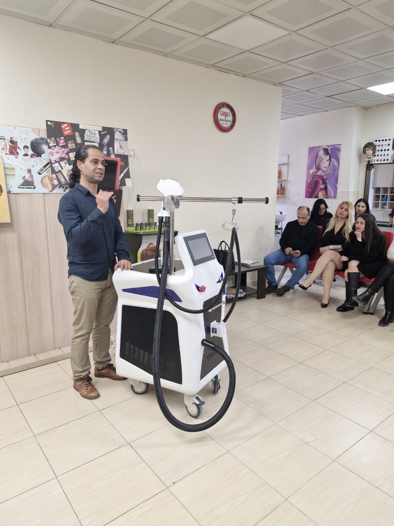 Uygulamalı workshop bölümünde ise uzman eğitmen Murat ERCAN tarafından yeni nesil teknolojiye sahip UMEX Lazer Cihazı tanıtıldı. Cihaz, diğer lazer sistemleri ile karşılaştırmalı olarak ele alınarak verimlilik düzeyi, etki farklılıkları, deri ve kıl üzerindeki sonuçları uygulamalı olarak katılımcılara aktarıldı.