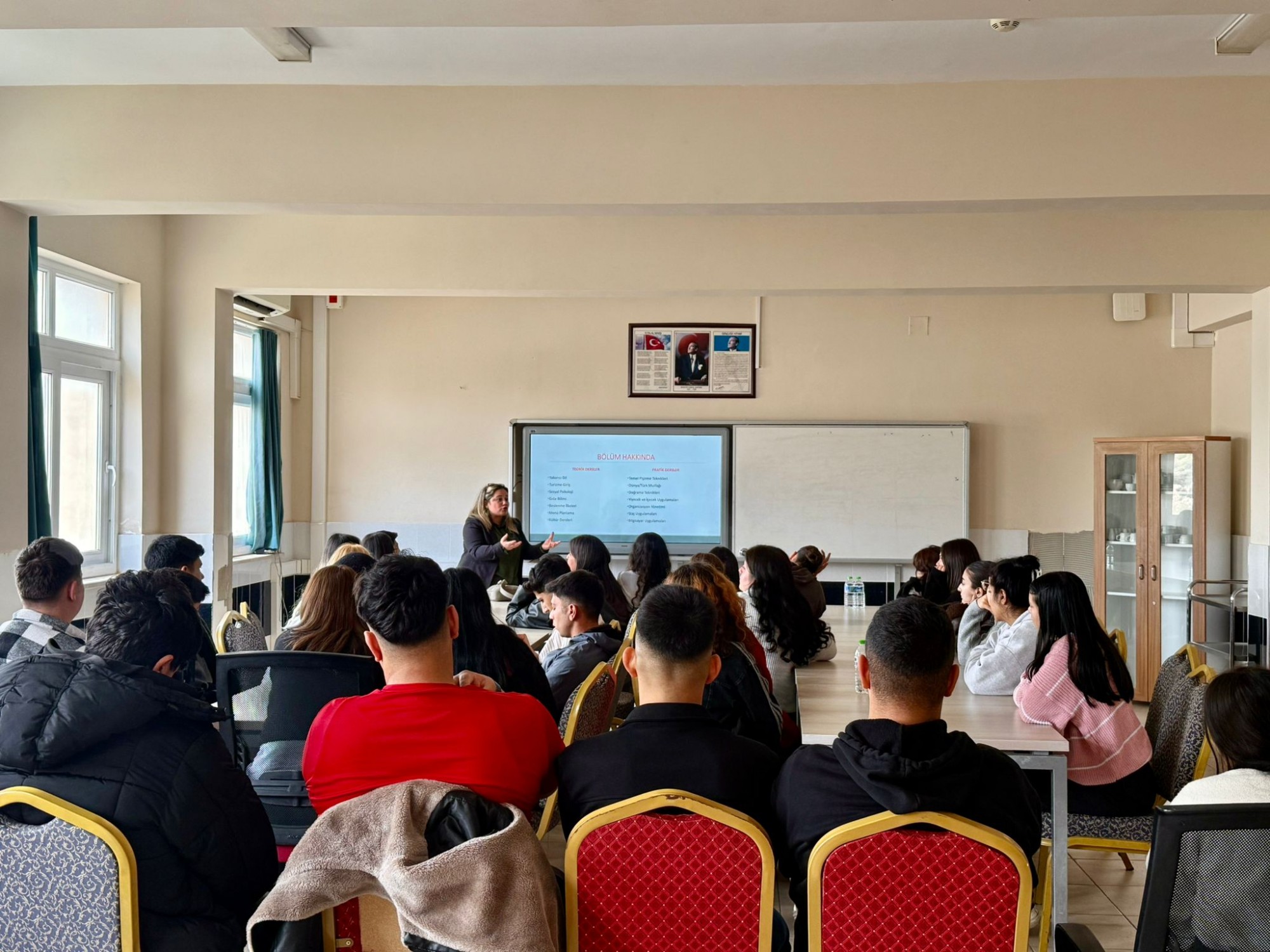 Mersin Üniversitesi Turizm Uygulama ve Araştırma Merkezi adına Meryem Ezgi Sakar, Silifke’de üniversiteye hazırlık sürecinde olan 12. sınıf öğrencilerine yönelik mesleki gelişim rehberliği kapsamında bir sunum gerçekleştirdi.