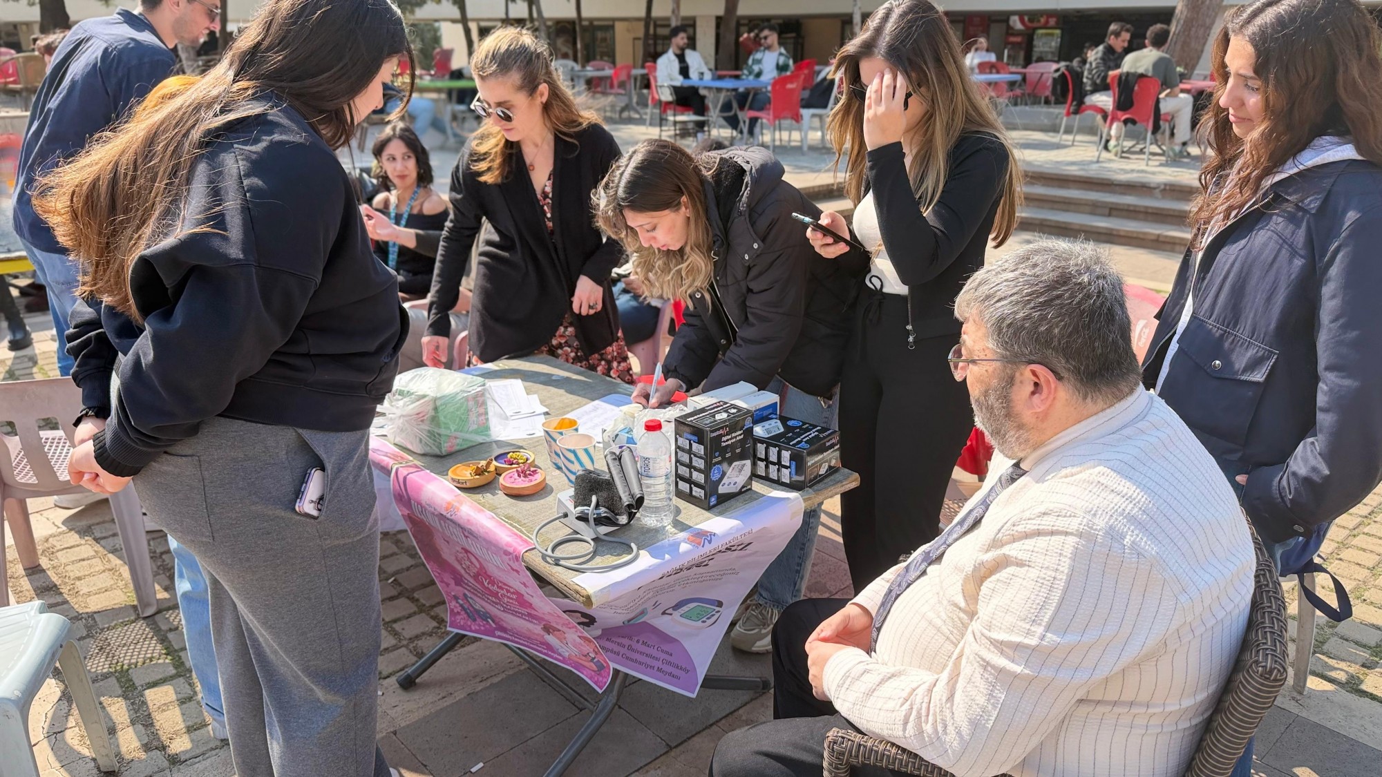 Sağlık Bilimleri Fakültesi Ebelik Bölümü öğrencileri, Kadın Sağlığını Geliştirme Topluluğu öncülüğünde 8 Mart Dünya Kadınlar Günü kapsamında anlamlı bir farkındalık etkinliği gerçekleştirdi. “Yaşamın Sessiz Sayıları” sloganıyla düzenlenen etkinlik, üniversitemiz Çiftlikköy Yerleşkesi Cumhuriyet Meydanı’nda gerçekleştirildi. Etkinlik kapsamında öğrenciler tarafından ücretsiz kan şekeri ve tansiyon ölçümü yapıldı. Katılımcılara ölçüm sonuçları hakkında bilgilendirme yapılırken, düzenli sağlık kontrollerinin önemi konusunda da farkındalık oluşturuldu.