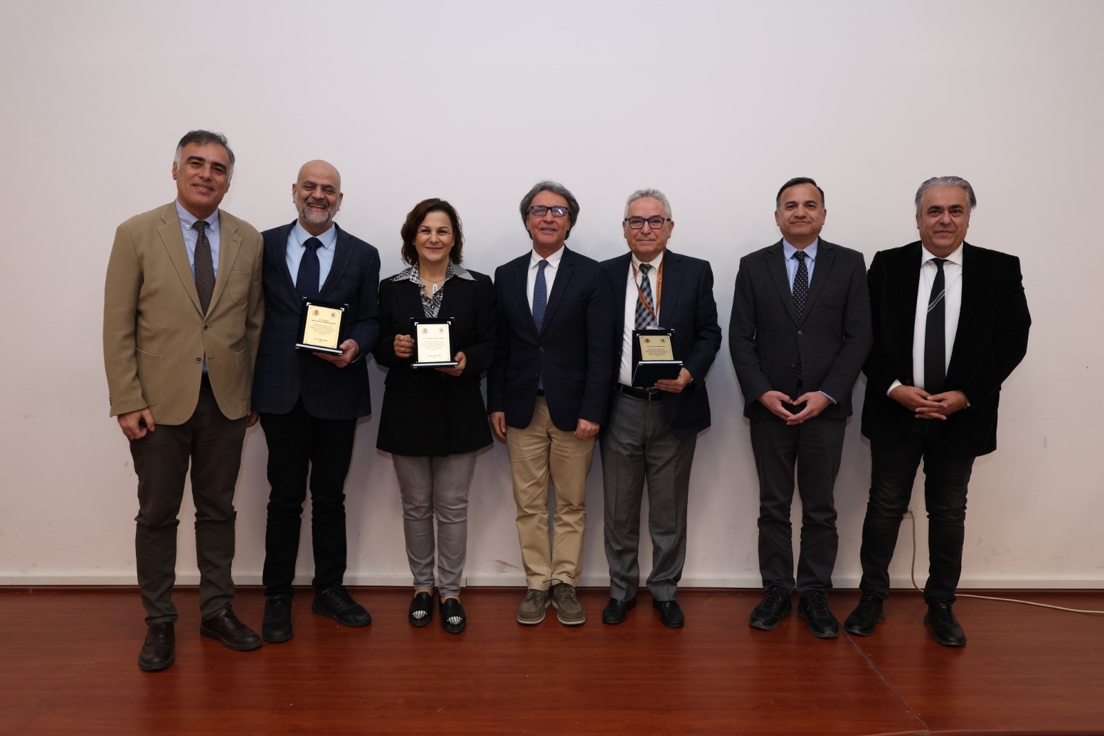Etkinlik kapsamında emekliliğe ayrılan öğretim üyelerine teşekkür plaketi takdim edildi. Uzun yıllar boyunca fakültemize ve sağlık hizmetlerine değerli katkılar sunan Prof. Dr. Nehir SUCU’ya teşekkür plaketi Rektör Yardımcısı Prof. Dr. Ahmet Hakan ÖZTÜRK tarafından verilirken, Prof. Dr. Metin Manouchehr Eskandari’ye plaketi Tıp Fakültesi Dekanı Prof. Dr. Murat ÜNAL takdim etti. Fevziye TOROS’a ise teşekkür plaketi Dekan Yardımcısı Prof. Dr. Şükrü Hakan KALEAĞASI tarafından sunuldu.