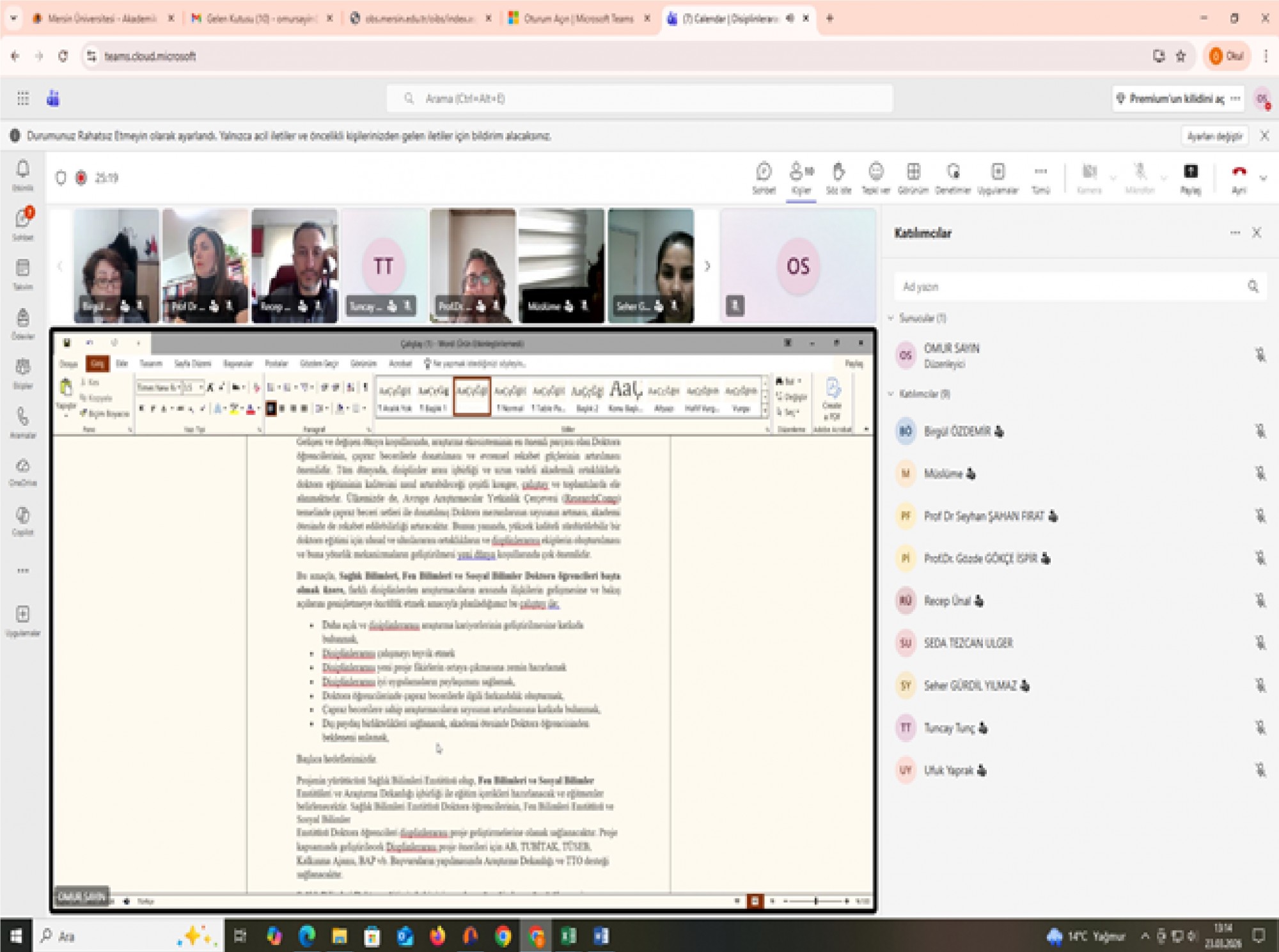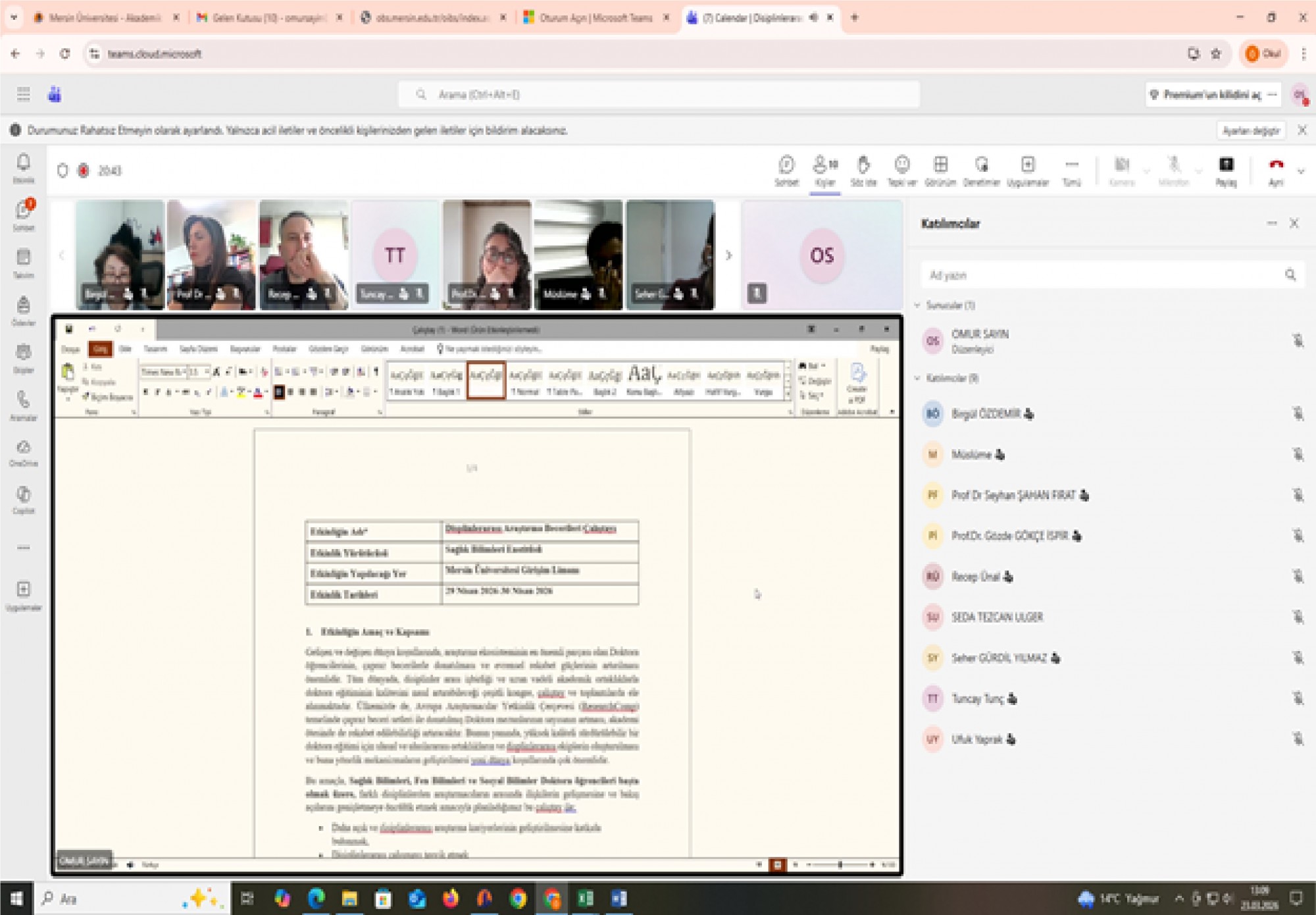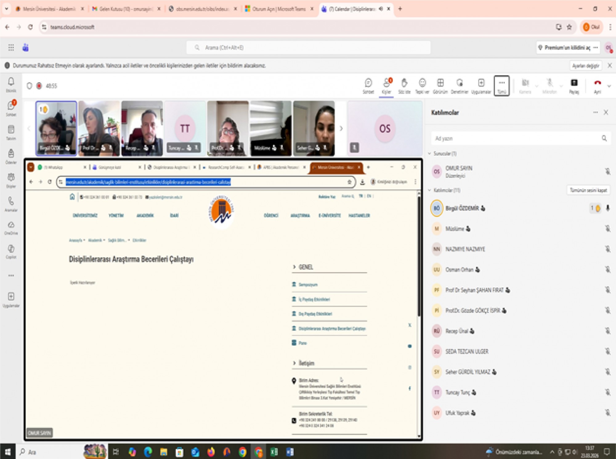 29-30 Nisan 2026 tarihlerinde Sağlık Bilimleri Enstitüsü yürütücülüğünde yapılması planlanan Disiplinlerarası Araştırma Becerileri Çalıştayı için, Fen Bilimleri Enstitüsü, Sosyal Bilimler Enstitüsü müdür ve müdür yardımcıları, Eğitmenler ve Etkinlik Düzenleme Kurulu üyelerinin katılımıyla 23 Mart 2026 tarihinde çevrimiçi toplantı yapıldı. Toplantıda, Eğitim içerikleri, program ve katılımcı sayıları gibi planlamalar netleştirildi.
