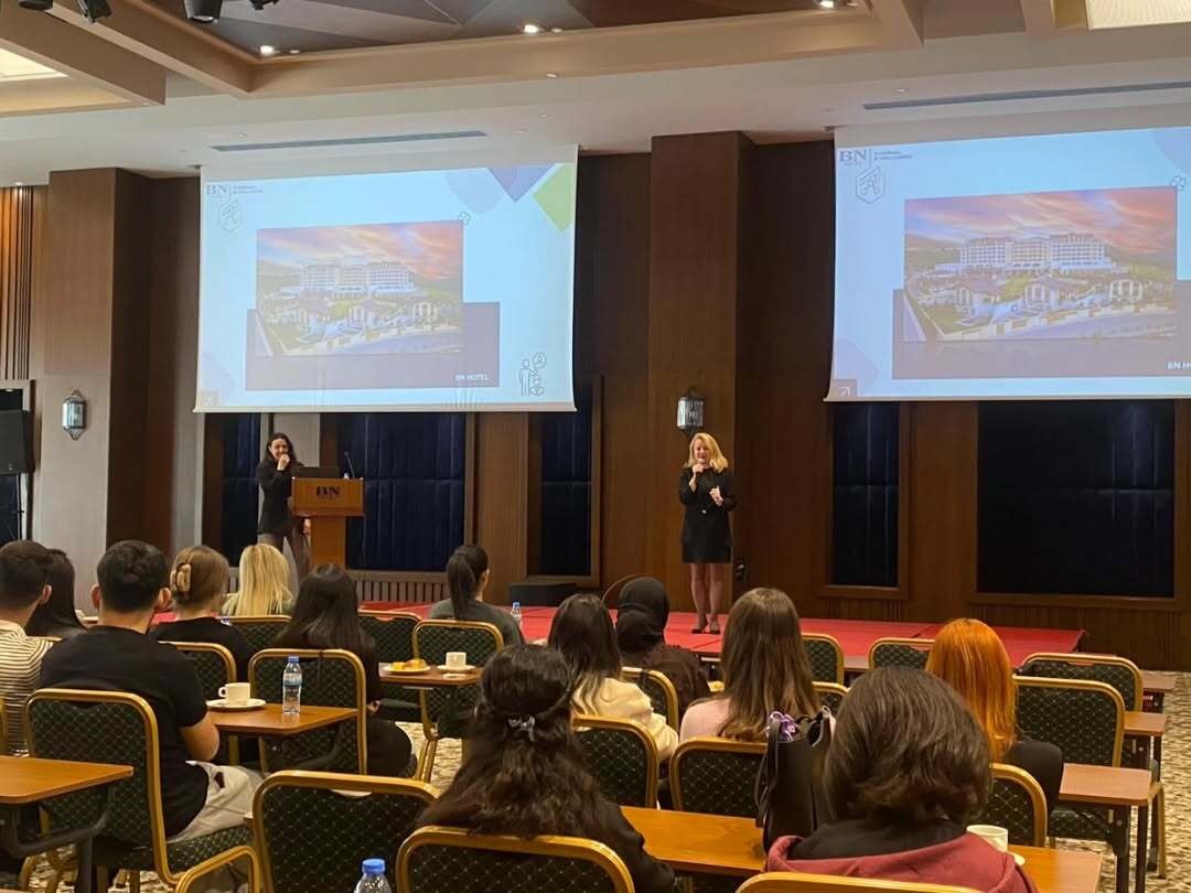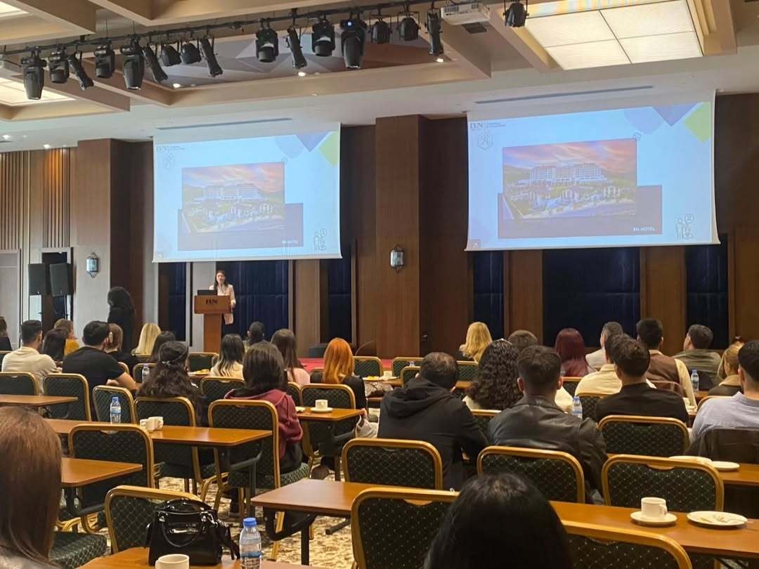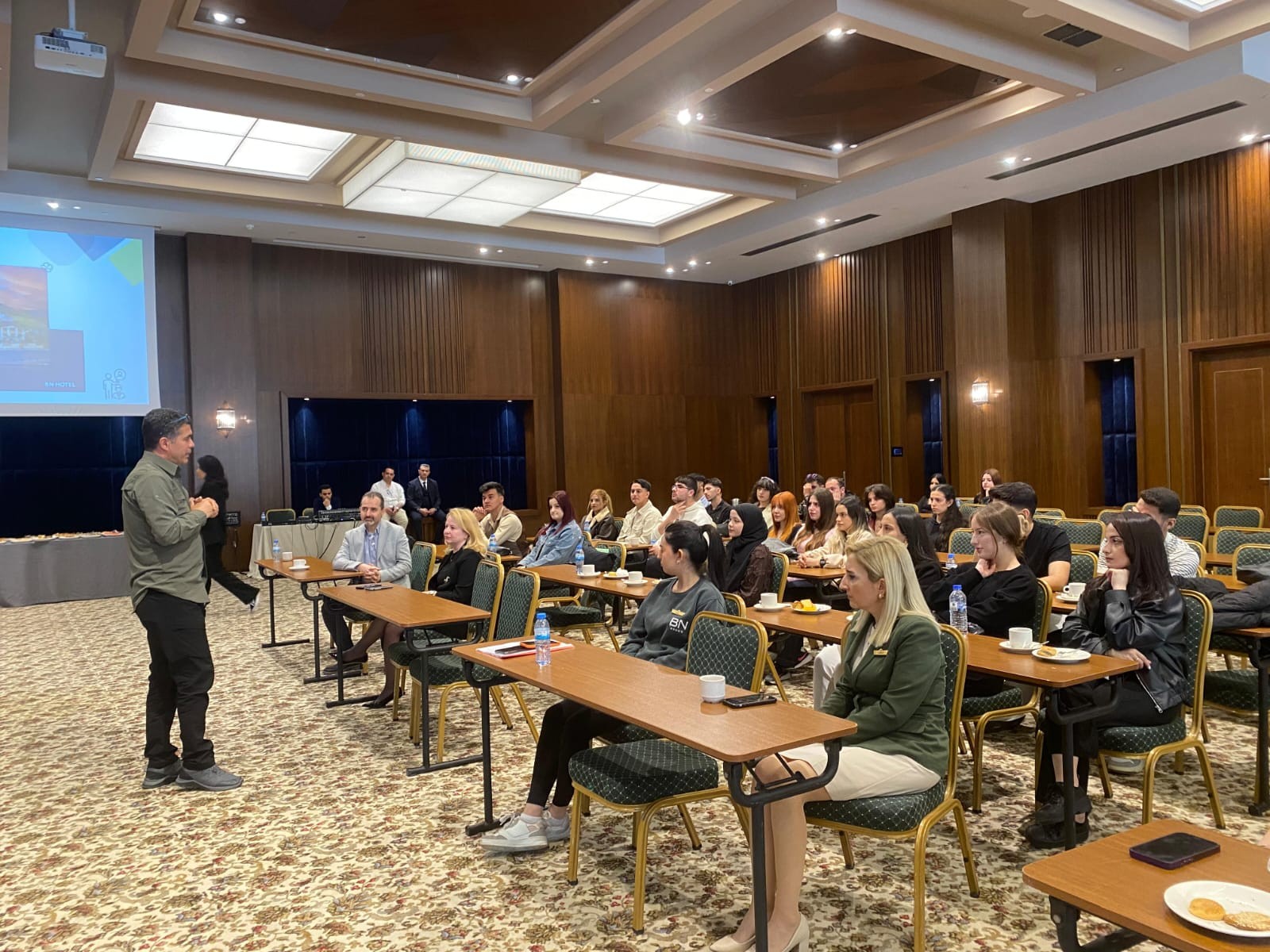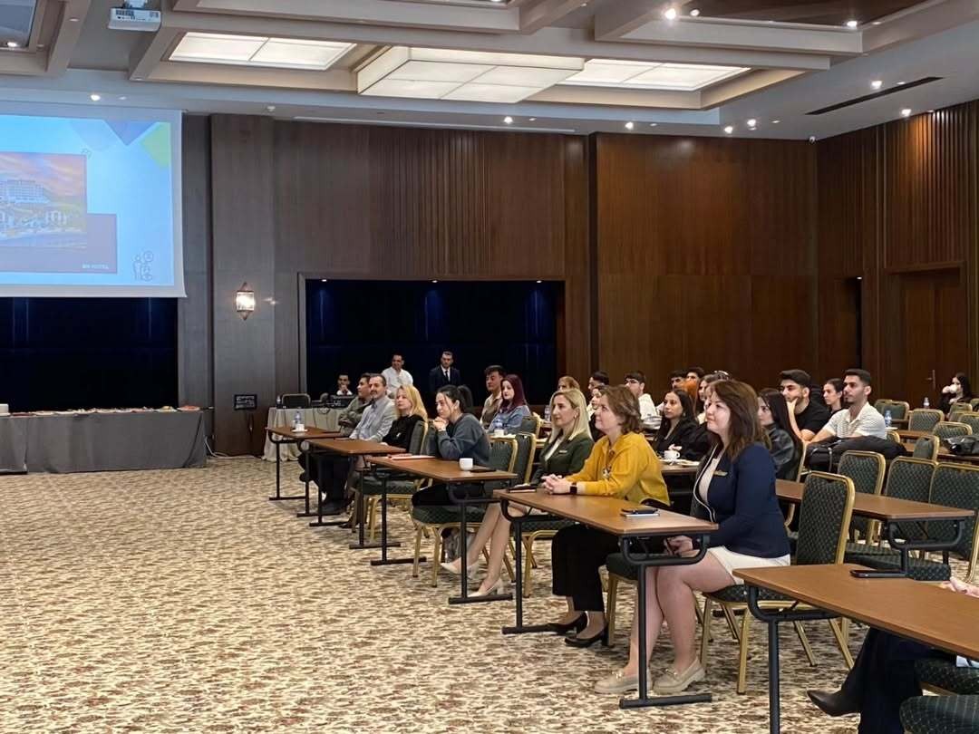 Tesis gezisinin ardından toplantı salonunda işletmeye ilişkin kurumsal tanıtım sunumu gerçekleştirildi ve öğrencilere sektördeki kariyer olanakları hakkında bilgilendirme yapıldı. Programın son bölümünde otel yöneticileri, kendi kariyer yolculuklarına ilişkin deneyimlerini paylaşarak öğrencilere mesleki gelişimlerine yönelik rehberlik edecek önemli tavsiyelerde bulundu.