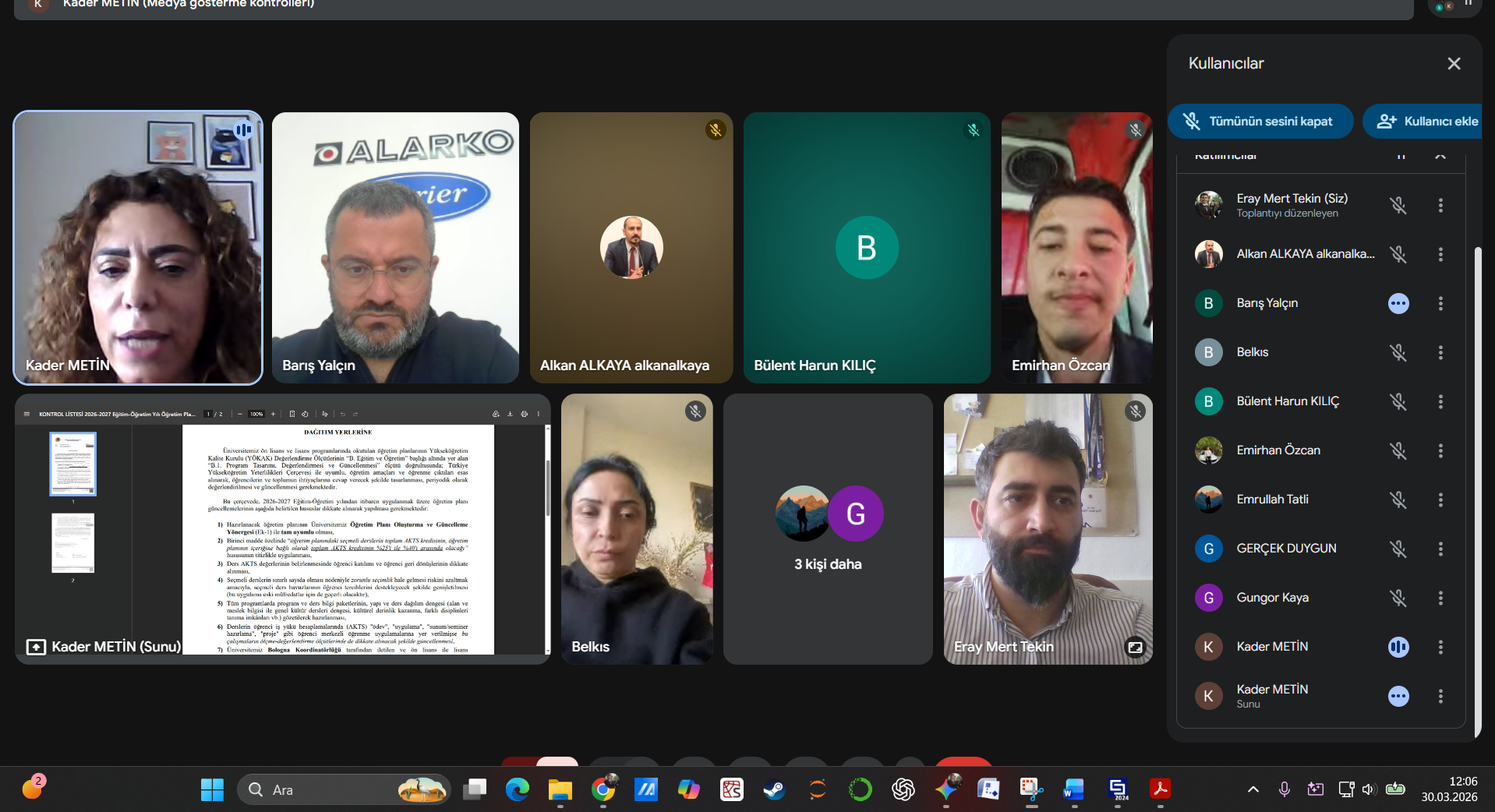 30 Mart 2026 tarihinde düzenlenen çevrim içi komisyon toplantısı, yalnızca akademik kadronun değil, sektörün öncü isimlerinin de katılımıyla "Dış Paydaş Odaklı" bir vizyonla gerçekleştirildi.